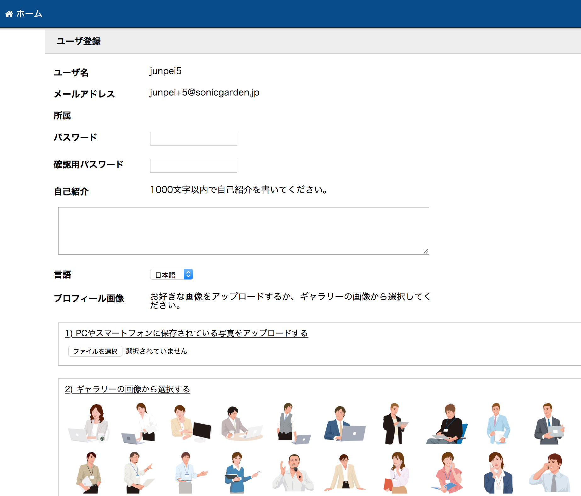 新規ユーザの登録